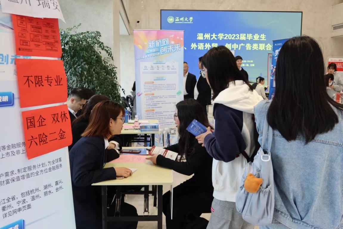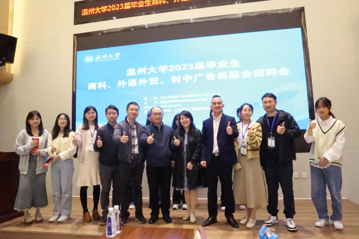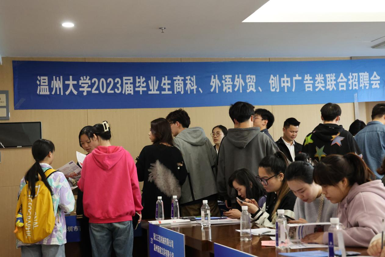 春来招聘浓暖意。四月正是2023届毕业生在毕业前的就业关键期,为拓宽学生求职就业渠道,4月12日下午,温州大学2023届毕业生商科、外语外贸、创中广告类联合招聘会于温州大学南校区科技综合大楼顺利举办。本次招聘会由温州大学招生与就业处主办,新葡萄8883官网AMG、人文学院、外国语学院共同承办。