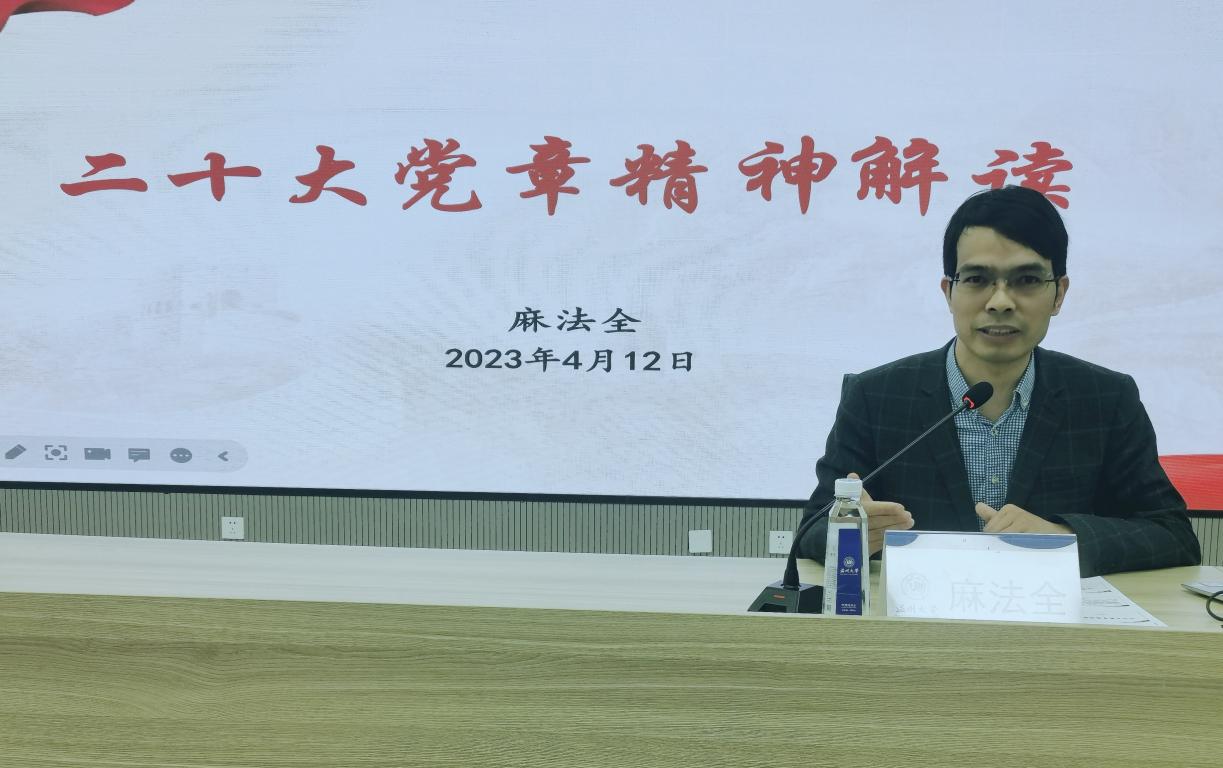为深入学习贯彻党的二十大精神,进一步强化教师思想政治素质和师德师风建设,学院特邀请温州大学组织部麻法全副部长作《二十大党章精神解读》专题讲座,帮助引导全院教职工认真学习《中国共产党章程(修正案)》的内容与要点。