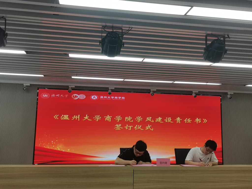 随后,由院长助理方嘉奇老师宣读《我院学风建设责任书》,并与代表班级签订学风建设承诺书,这一张承诺书是一份沉甸甸的责任与义务,代表这商院师生对于建设优良学风的信心与决心。