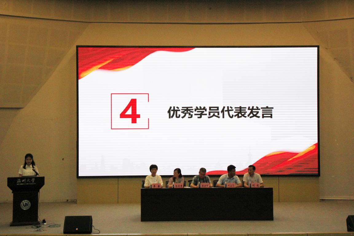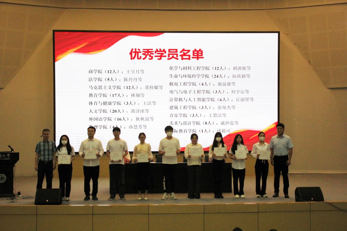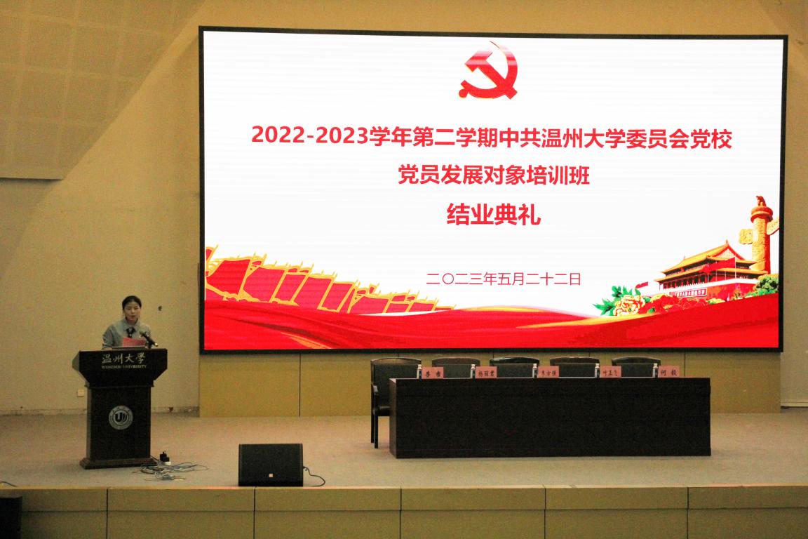 为增强党员发展对象的党性,筑牢理想信念,2023年5月22日14:00在教育学院一楼报告厅举行2022-2023学年第二学期中共温州大学委员会党校党员发展对象培训班结业典礼。出席本次结业典礼的有新葡萄8883官网AMG党委书记、分党校校长李密,教育学院党委书记、分党校校长何毅,外国语学院党委书记、分党校校长杨丽君,电气与电子工程学院党委书记、分党校校长李方强,美术与设计学院党委书记、分党校校长叶正飞,各学院党建工作老师以及619名党员发展对象。结业典礼由新葡萄8883官网AMG研究生辅导员王景欣老师主持。