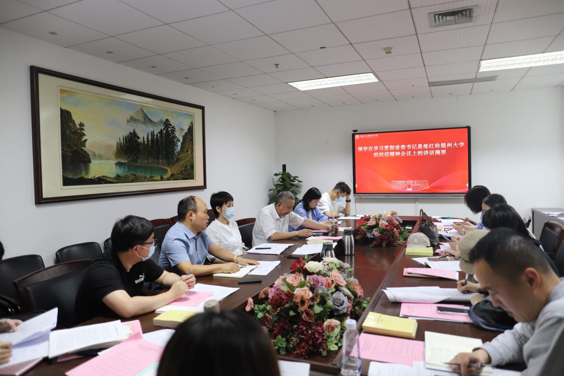 会上,李密书记领学了“省委书记易炼红给温州大学的回信精神会议”上的讲话摘要,并强调了三点,一是要进一步提高政治站位,深刻领悟回信和讲话精神重要意义;二是要进一步锚定目标定位,抢抓机遇促进学校能级跃升;三是要进一步增强使命感,加快推进学校内涵式高质量发展。同时,她鼓励全院师生要在深入实施“八八战略”、强力推进创新深化改革攻坚开放提升,奋力打造中国式现代化教育示范省和“续写温州创新史、走好共富路”的伟大实践中贡献温大力量。