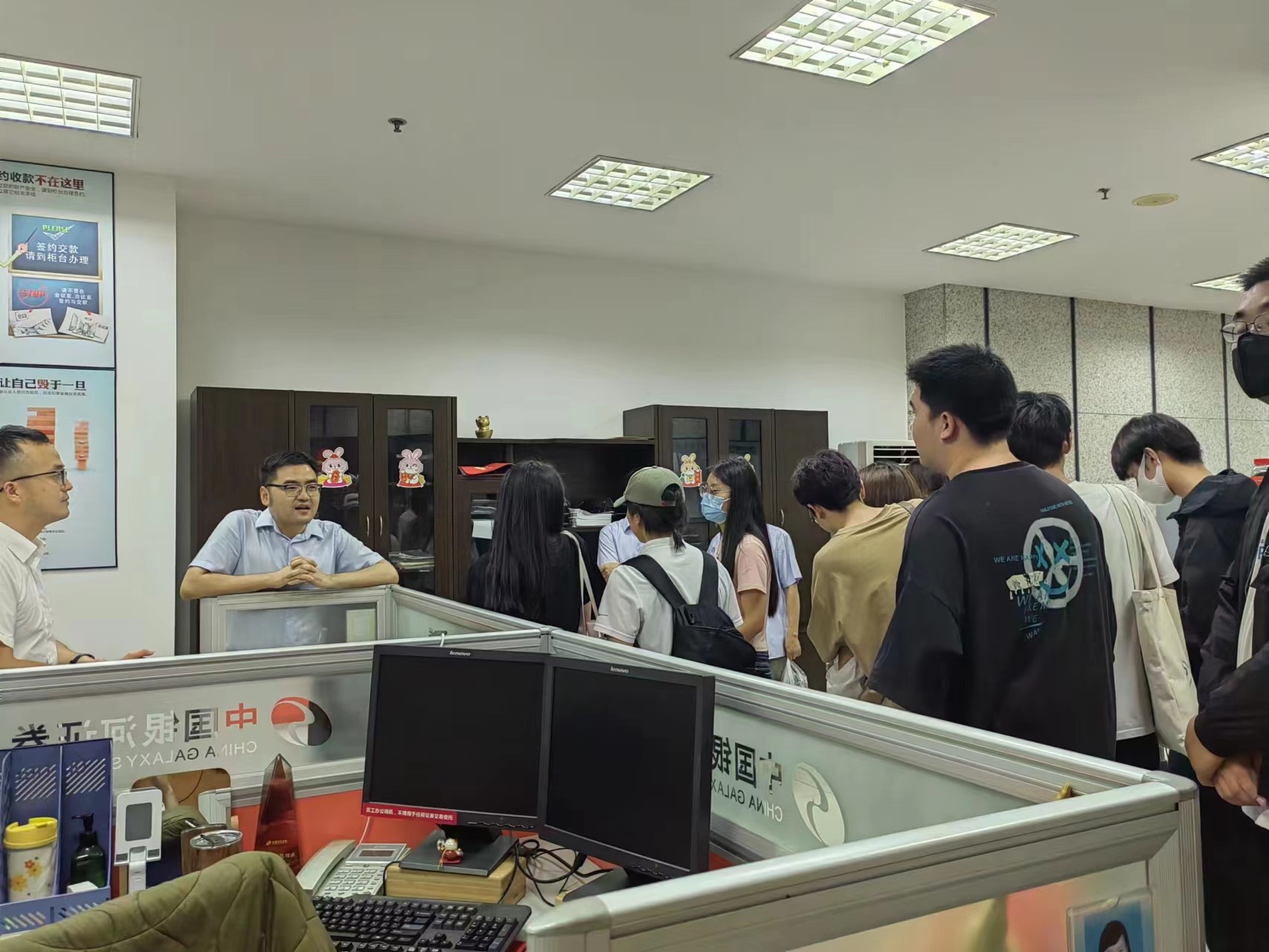 2023年6月7日下午,李志阳老师和易晓文老师带领金融工程专业的学生们参观了中国银河证券有限责任公司。此次活动也得到了新葡萄8883官网AMG易晓文老师、林德根主任和中国银河证券张业经理的大力支持。同学们本次进行参观,并将于6月11日上午在线进行进一步的交流。