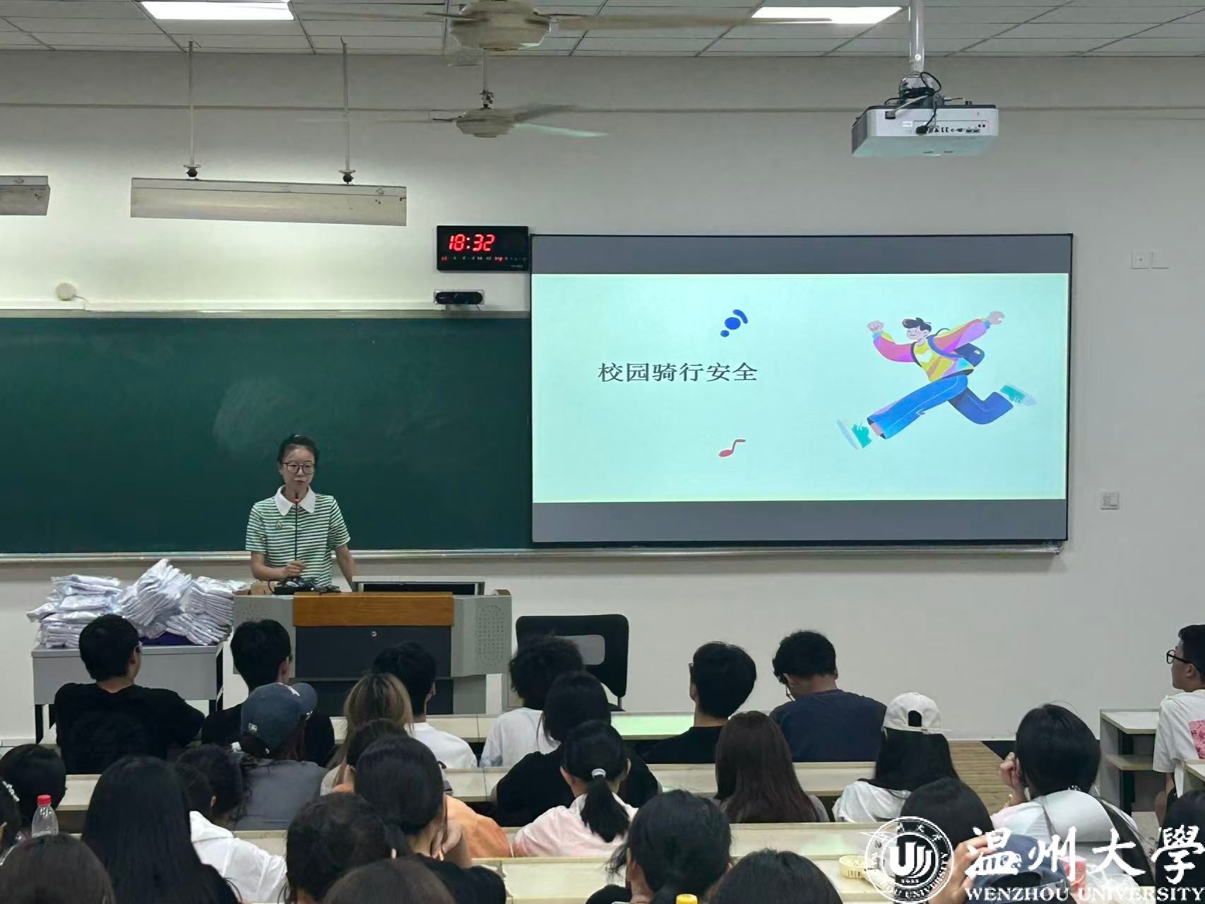 在安全方面,辅导员们讲解消防安全知识,要求新生掌握灭火器“提拉握拔” 使用方法;明确校园骑行规则,强调“不超速、不载人、不逆行”,共享电瓶车需戴头盔且不载人。信息获取渠道上,她介绍温州大学官网、我院官网等平台,说明统一身份认证登录方式,以及培养方案查询路径;提醒新生要关注“温州大学”“我院”“温大学工”等公众号,及时查看年级群、班级群消息,通过“校务行”小程序打印成绩单与学籍证明。此外,还公布了幸福工坊、校园报警电话、南校医务室等关键服务信息与联系方式。