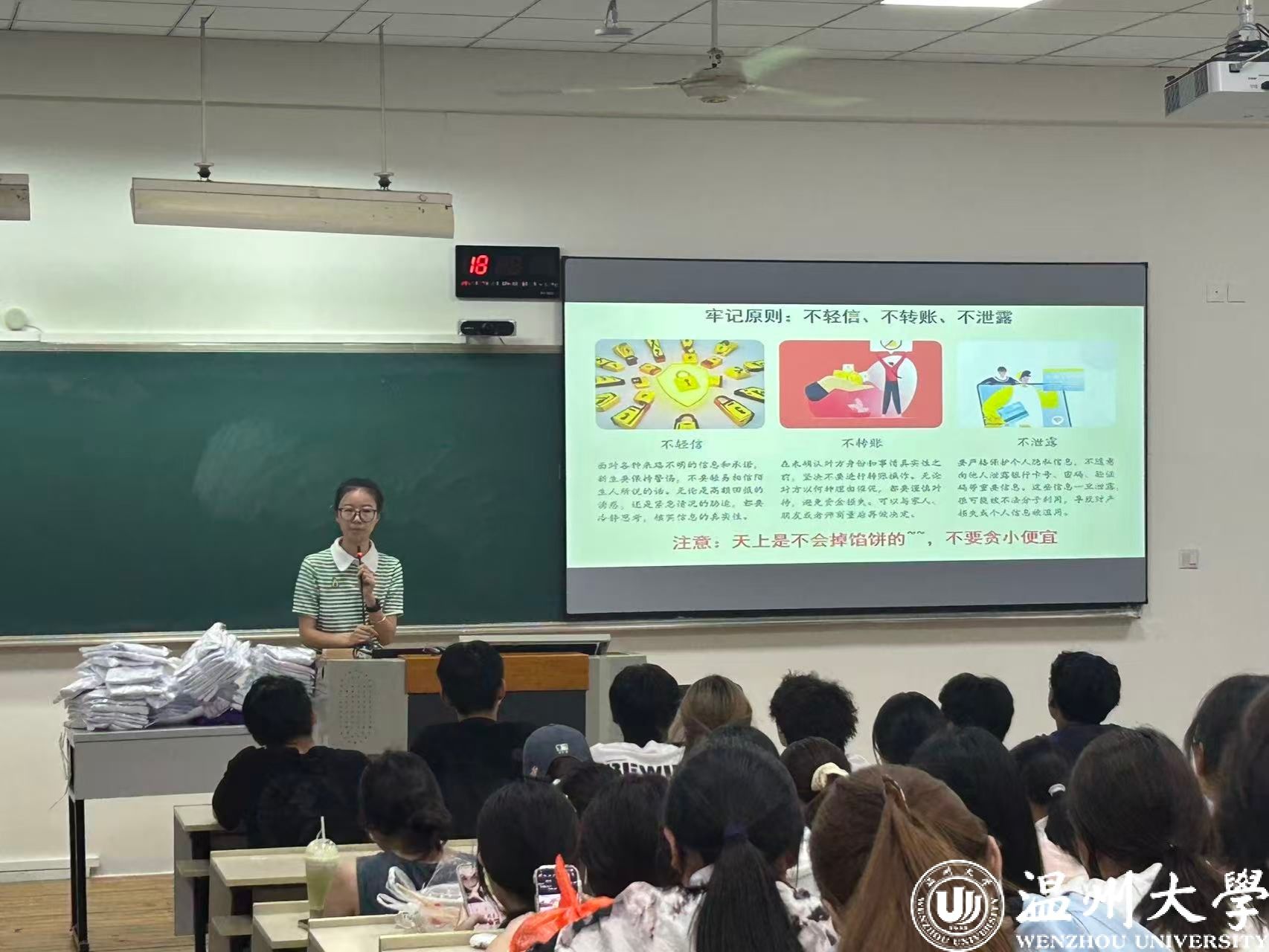 针对新生易遭遇的诈骗类型,辅导员详细解读刷单、网贷、冒充客服三类诈骗手段。刷单诈骗以“高额报酬”为诱饵,先返小额佣金再诱导大额投入后拒还本金;网贷诈骗以“无抵押、低利息”为幌子,诱骗下载虚假APP并以手续费等名义要求转账;冒充客服诈骗则伪装电商客服,以退款理赔为由套取银行卡信息。辅导员们提醒新生“不轻信、不转账、不泄露”,告诫新生 “天上不会掉馅饼”,警惕贪小便宜心理,做好大学生廉洁教育。