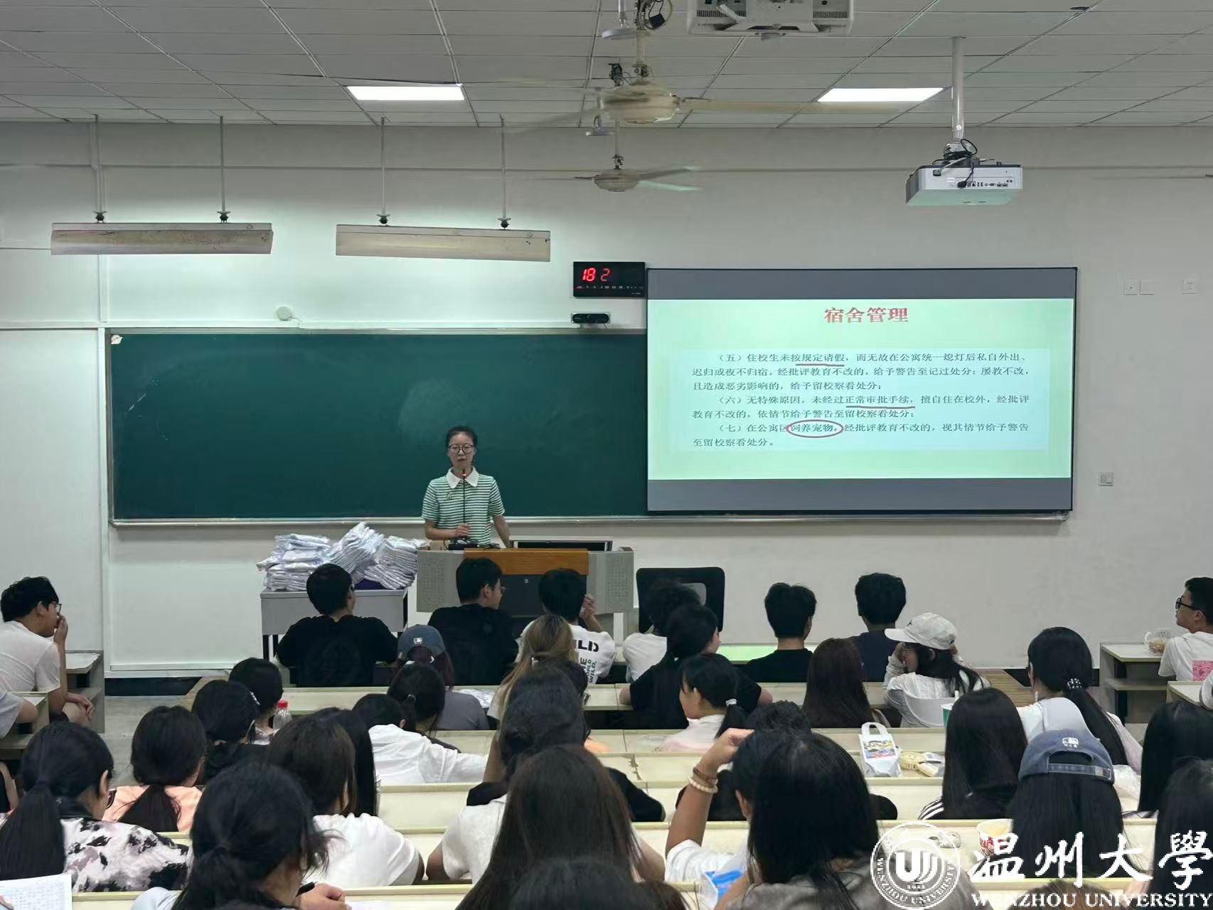 9月,温州大学我院2025级新生“大学新生开学第一课——伴你同行,共启新篇”主题班会顺利举行。本次班会由新生年级辅导员周洁文、聂海燕分别主持,2025级新生参会,主要围绕新生适应大学学习生活的关键事项展开,为新生快速融入校园筑牢基础。