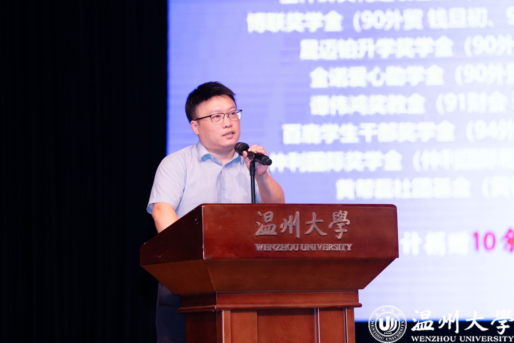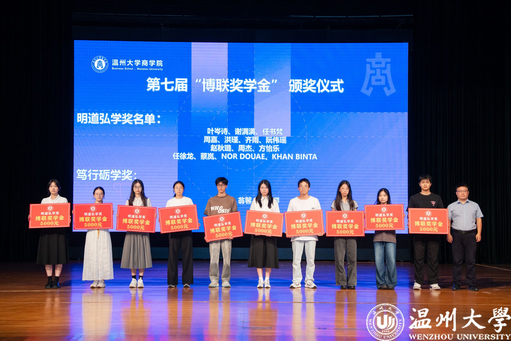仪式上,第七届 “博联奖学金” 颁奖仪式同步举行。获奖学生依次上台领奖,他们的优秀表现赢得了现场师生的阵阵掌声。新葡萄8883官网AMG党委书记唐华为新生介绍了我院优秀校友捐赠的各类奖助学金;随后,“書立奖学金” 评选启动仪式正式开启,唐书记介绍了奖学金由来及评选标准与流程,鼓励同学们以更高的标准要求自己,争取获得荣誉。