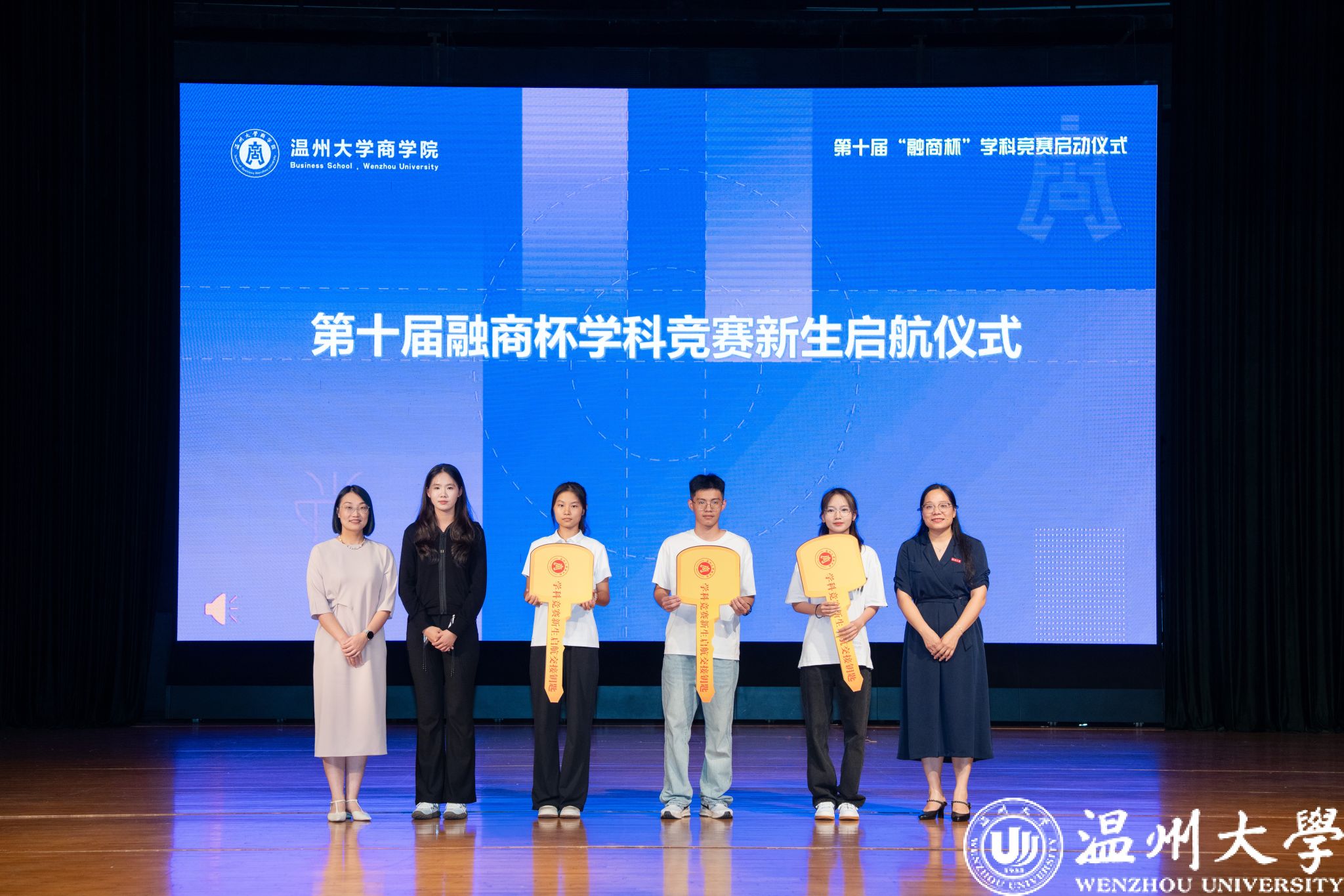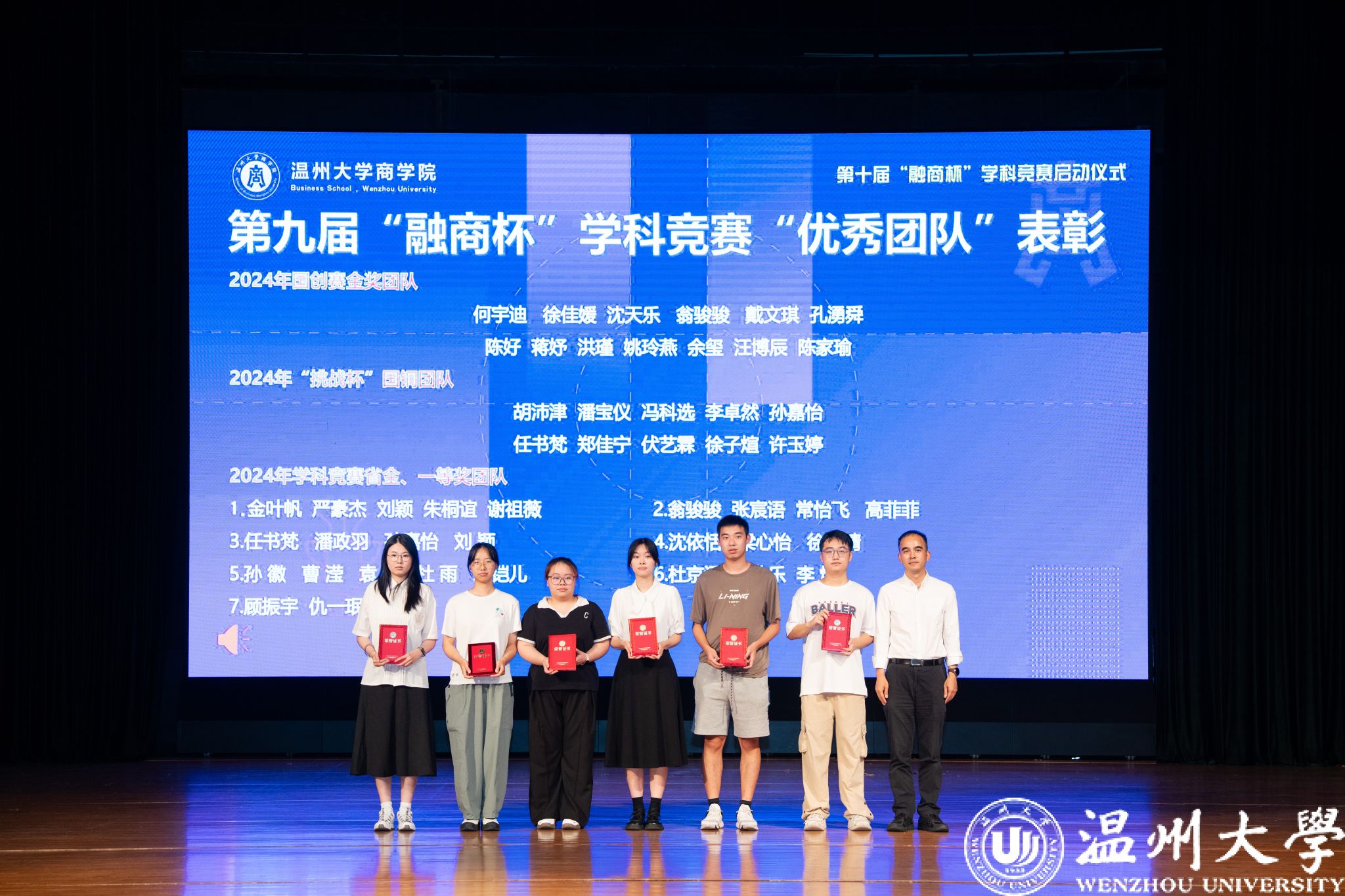 仪式进入 “融商杯” 系列学科竞赛颁奖环节。在热烈的掌声中,获奖团队代表依次上台,接受领导颁发的荣誉证书。一张张证书不仅是对学子们过往努力的肯定,更是对全体商院学子的激励,鼓励大家以先进为榜样,在学科竞赛的舞台上勇攀高峰。