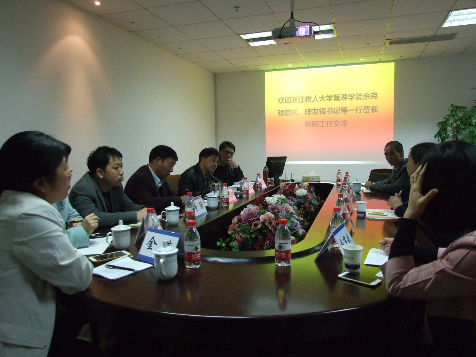 近日,浙江树人大学管理学院院长余克艰、书记陈友银等一行莅临我院做工作交流,我院书记郑彩莲、副院长林俐、罗建利等参加交流会议。