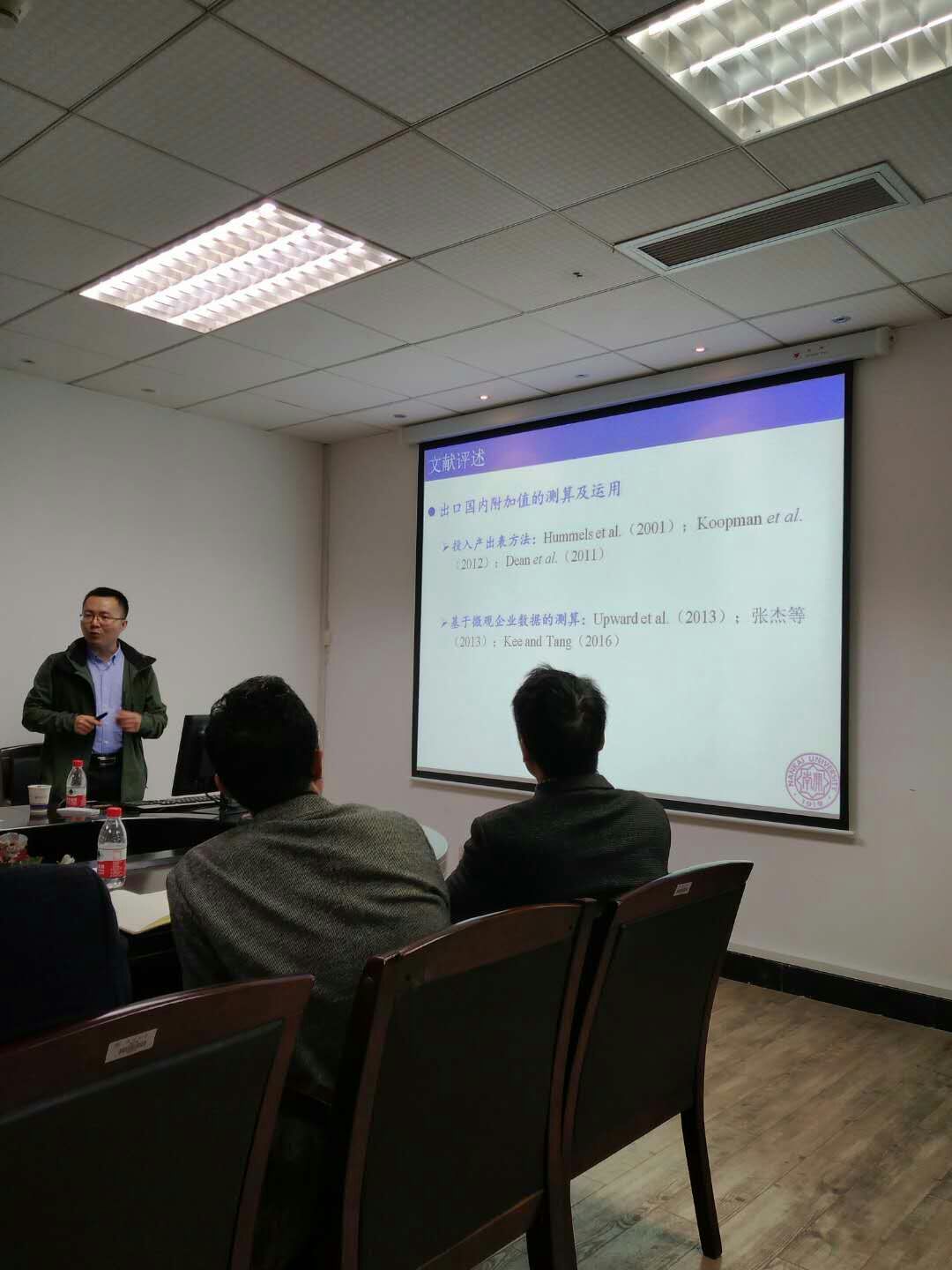 毛博士以《 贸易自由化与中国制造业出口国内附加值》这篇文章为主题,就该文章的选题、数据搜集、数据分析方法一一给现场师生做了详尽的解释,同时新葡萄8883官网AMG老师与毛博士就文章存在的诸如选取什么年限的数据库、中国加入WTO后关税是否真的下降等疑问进行了深入的探讨。