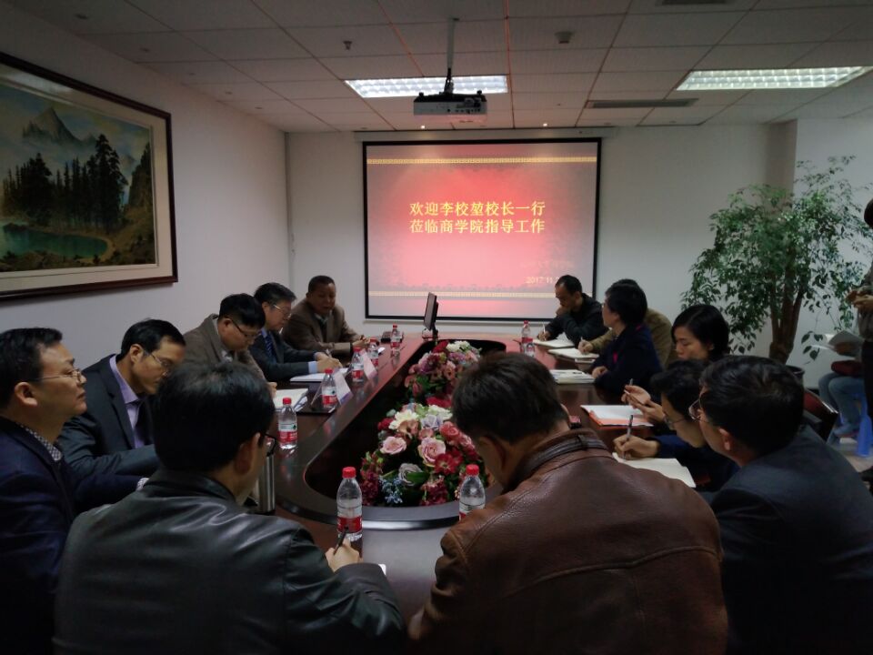 2017年11月27日,校长李校堃、党校办主任蔡联群一行莅临新葡萄8883官网AMG宣讲十九大精神、调研并指导工作,学院党政班子参加了会议。