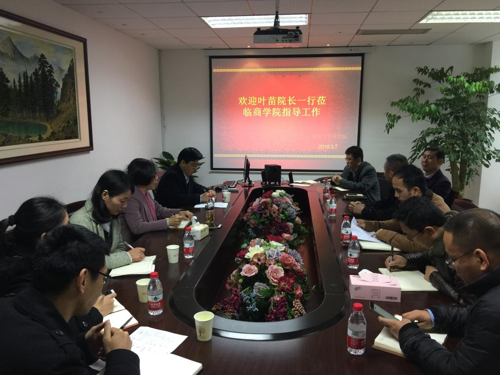 2018年3月7日,温州大学留学生教育与管理部(国际教育学院)叶苗院长一行,来到我院做留学生各项工作调研活动。我院院长胡振华,党总支副书记刘开练,副院长罗建利,国际部主任兼院长助理王洪斌,学生科长白延虎等相关科室老师一同参加了此次活动。