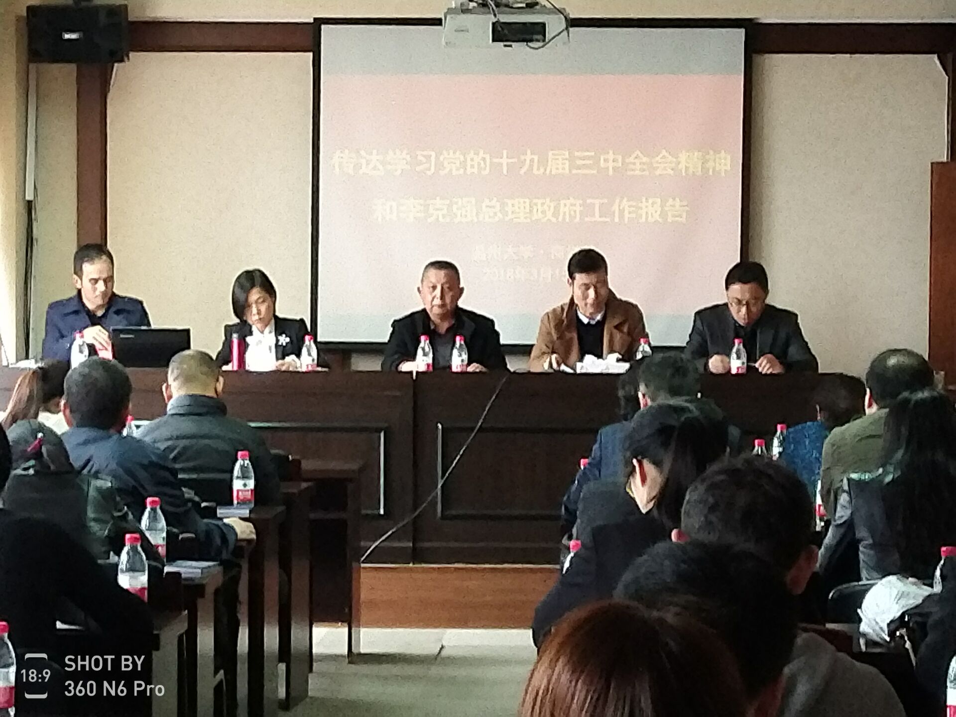 刘开练副书记首先传达党的十九届三中全会精神和李克强总理的政府工作报告,他说:“我们要把学习贯彻全会精神,作为当前和今后一个时期的首要政治任务,以高度的政治觉悟和自觉性,深入系统学习领会全会精神,准确把握全会精神实质,并且与自身工作紧密结合起来”。同时,刘书记分别就新学期学院党建工作、新学期辅导员工作安排及学生工作、工会工作做了具体的安排。