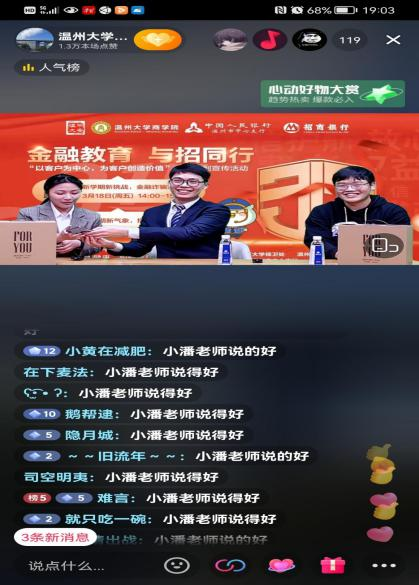 为进一步增强在校师生的金融安全意识,提高大学生反防范诈骗能力,充分运用金融宣传教育基地宣传示范作用,2022年3月18日,在人行温州市分行的指导下,招商银行温州分行联合我院共同开展防诈直播活动。