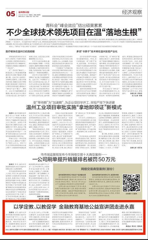 我院与招商银行温州分行共建金融教育基地以来,在双方的共同努力下,吸引了多家金融机构加入到金融教育基地当中,队伍越来越壮大、活动越来越精彩,他们秉持着服务初心,让金融教育在高校、社区、农村、企业生根发芽,以长效化、常态化的机制为基础,逐步将金融教育基地打造成示范样板。(通讯员:潘道品 周洁文 聂海燕)