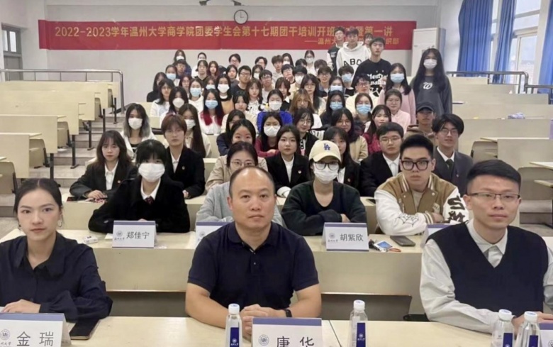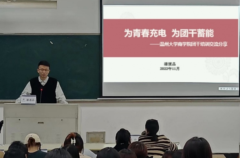当天,我院同期举办了第十七期团干培训开班仪式暨第一课,由招商银行温州分行团委书记潘道品为团学干部讲授“为青春充电,为团干蓄能”主题团课,以自身的大学和职场经历,为团学干部分享经验并提出建议。