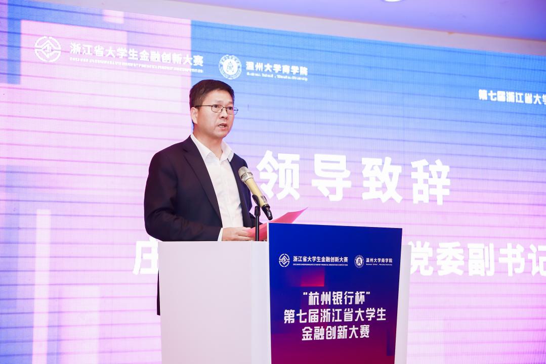 近日,由浙江省大学生科技竞赛委员会、钱塘江金融港湾高等教育联盟主办,浙江省大学生金融创新大赛委员会、浙江工商大学和温州大学承办,杭州银行股份有限公司和浙江省金融人才协会协办的“杭州银行杯”第七届浙江省大学生金融创新大赛在温州大学顺利举行。