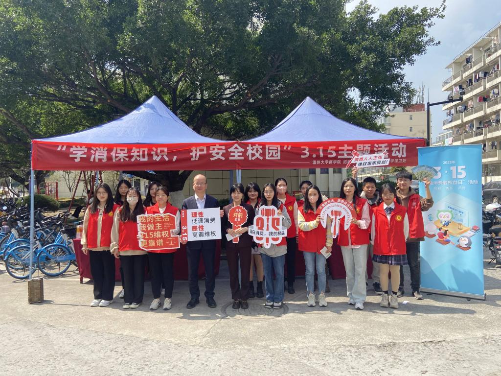 “我觉得这样的活动很有意思,作为商科学生,我也不仅可以把所学的消费者权益保护和金融专业知识讲解给其他同学听,还更加意识到作为商科专业学生所肩负的社会责任。”宣讲团成员21级研究生董顺在接受采访时这样说。在第40个“3·15国际消费者权益日”当天,我院以“浙江省金融教育示范基地”为载体,联合招商银行温州分行、学校保卫处在温州大学各生活区广泛开展“学消保知识,护安全校园”3.15消费者权益保护知识主题宣传活动,引导广大师生科学、合理消费,保护合法权益权益,助力防范化解金融风险,营造和谐稳定的金融环境。