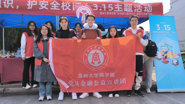3月15日国际消费者权益日,我院以“浙江省金融教育示范基地”为载体,联合招商银行温州分行、学校保卫处在温州大学各生活区广泛开展“学消保知识,护安全校园”3·15消费者权益保护知识主题宣传活动,引导广大师生科学、合理消费,保护合法权益,助力防范化解金融风险,营造和谐稳定的金融环境。