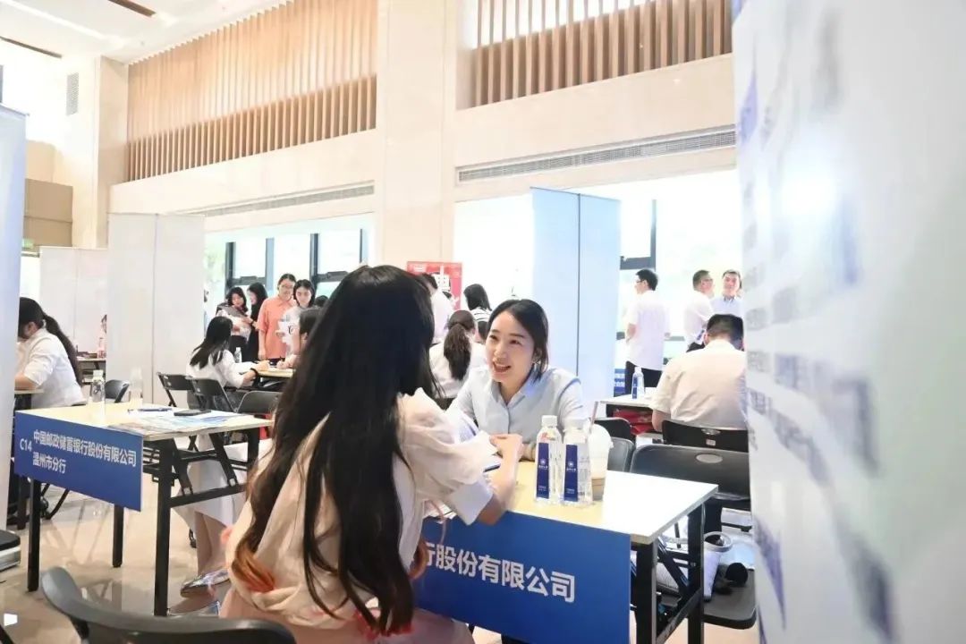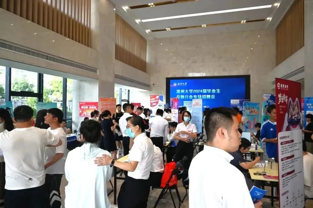 为了更好地满足2024届毕业生和金融行业用人单位秋季招聘需求,搭建有效的洽谈平台,拓宽学生求职就业的渠道,9月20日下午,“金彩人生 职等你来”金融行业专场招聘会于温州大学南校区科技综合大楼顺利举办。在温州市人民政府金融工作办公室的大力支持下,本次招聘会云集了国有六大银行,申万宏源、上海证券、中信证券、中国人寿、泰康人寿等金融行业53家头部企业参会,提供了1700多个高质量的就业及实习岗位,堪称一场含“金”量超高的招聘会。本次招聘会由温州市人民政府金融工作办公室、温州大学联合主办,校招生与就业处、新葡萄8883官网AMG、人文学院、外国语学院共同承办。