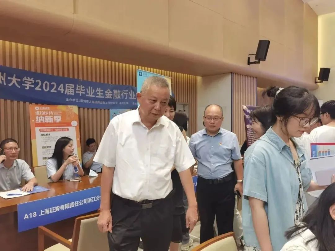 温州市金融办合作服务处副处长陈天同、温州大学招生与就业处处长蔡锋、我院院长胡振华、党委书记李密等相关单位负责人及各学院就业辅导员来到现场,细致了解各招聘单位的岗位设置、招聘人数、薪酬待遇等情况,与参会的毕业生同学们亲切交流,询问同学们的求职情况及求职意愿,并给予悉心指导和耐心解答。