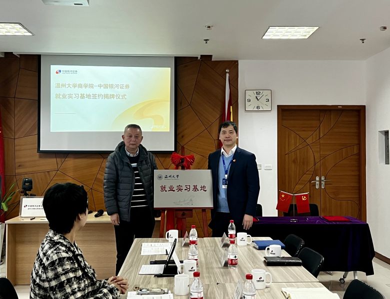 3月21日,我院与中国银河证券温州大南路证券营业部举行了就业实习基地签约暨揭牌仪式。我院院长胡振华、党委书记李密等一行出席签约仪式并座谈交流。