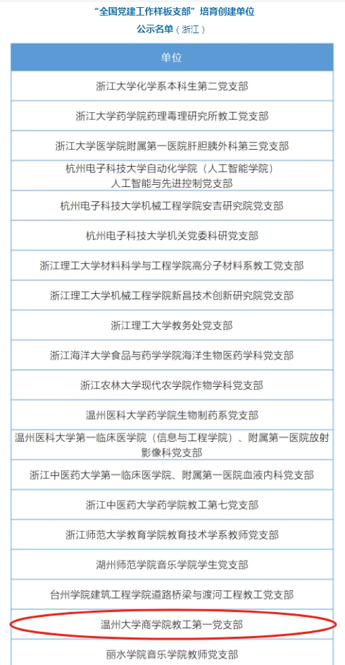 在温州大学第三次党员代表大会即将召开之际,该校党建工作领域收获一项重磅喜讯。近日,国家教育部印发《关于开展第四批新时代高校党建示范创建和质量创优工作的通知》,我院教工第一党支部(金融系党支部)摘得“全国党建工作样板支部”称号,为该校党代会的召开新添一抹亮色。