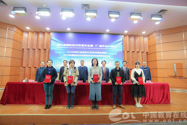 年会开幕式由学会副会长、浙江商务研究院院长兰健主持。大会对学会2019年国际经济贸易研究优秀成果奖获奖作者进行了表彰。温州大学党委副书记庄兴忠、浙江省社科联社团处处长郁兴超致辞。开幕式上,庄兴忠副书记介绍了温州大学办学成绩和我院的办学特色。
