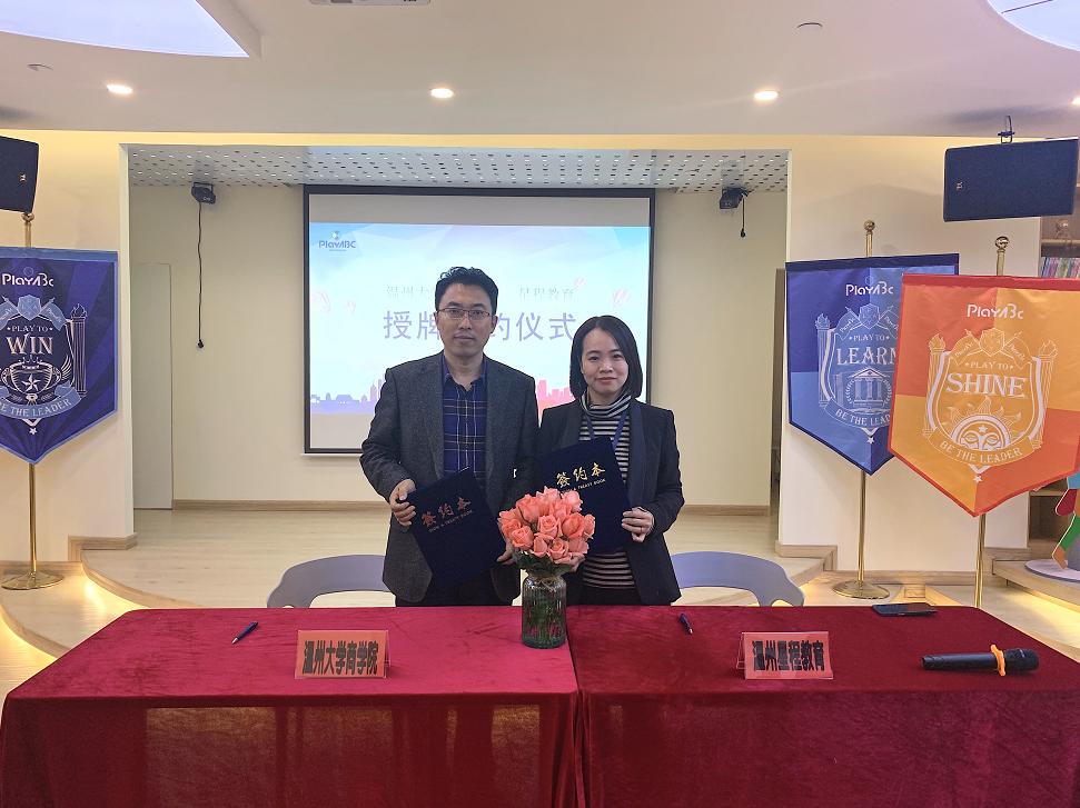 2019年11月17日,我院的三十余位国际留学生来到PlayABC温州校区参观学习。当天,我院王洪斌博士与PlayABC温州校区校长Wing签署《我院与温州星程教育(PlayABC温州校区)签署国际学生实践基地协议》,PlayABC温州校区正式挂牌成为我院国际学生实践基地。