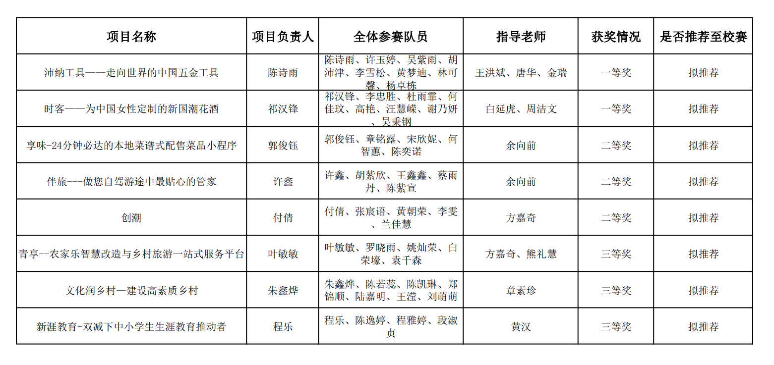 经过评委老师综合文本评审、路演陈述及自由问辩等环节的评议,院赛评选结果及拟推荐参与校赛名单如下: