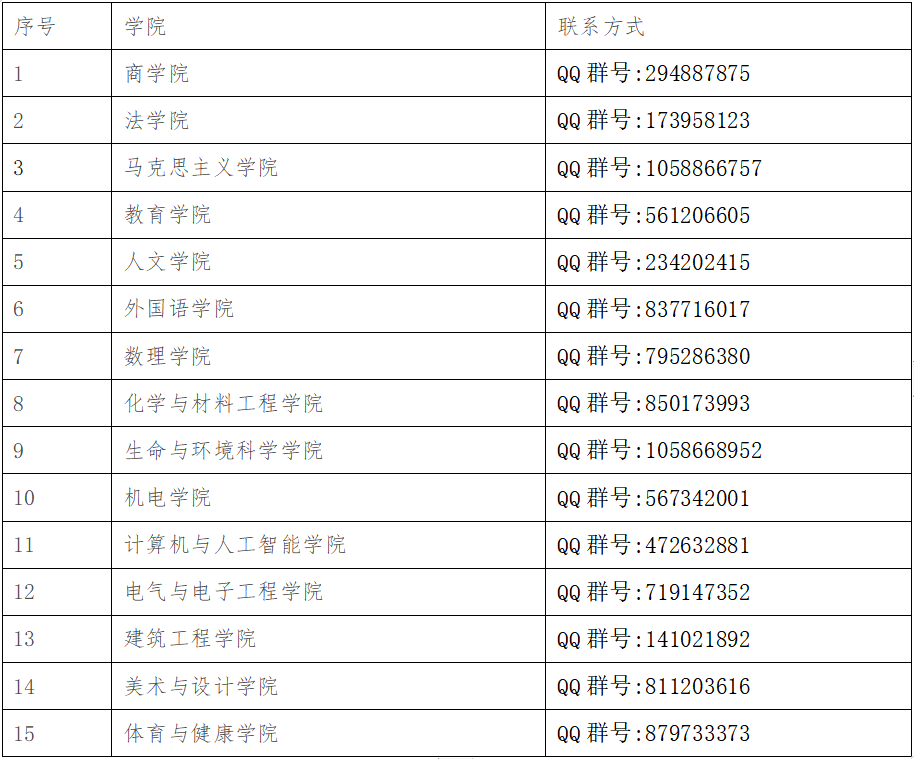 各学院已建立转专业工作专用QQ群,如下表,相关申请转入同学请实名加群,及时关注群内通知。