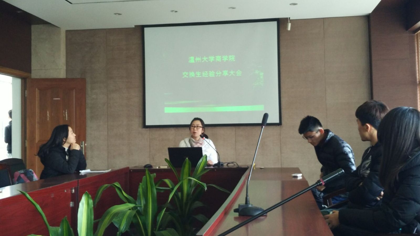 2016年3月11日下午三点半,台湾交换生交流会在北校信息楼A307准时举行,会议由辅导员周洁文老师主持,来自温州大学的优秀交换生周凡琦、孙迪涛和沈杰同学与商院的同学们分享了他们的交换生经历,并与商院的同学们进行了心得交流。