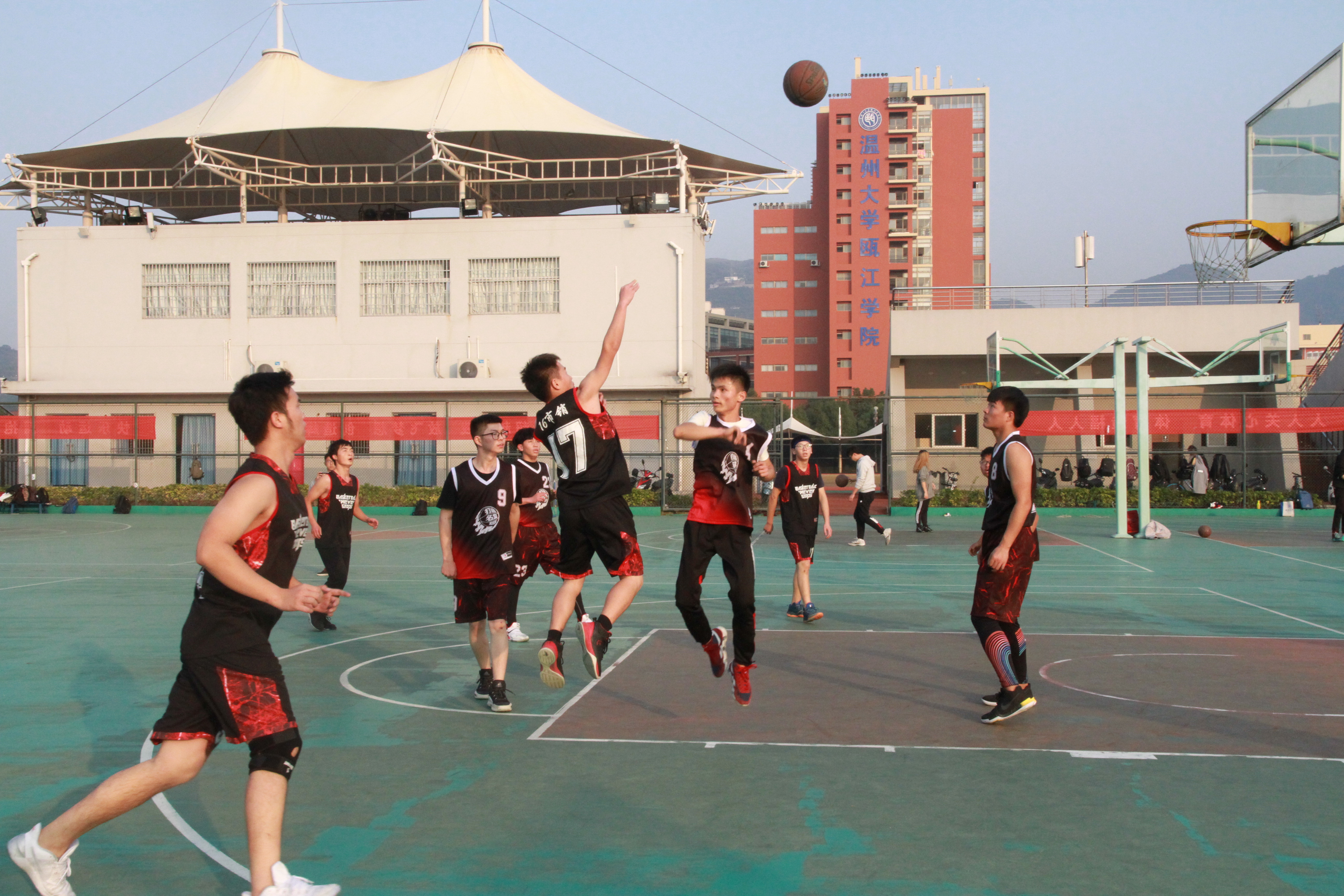 12月4日,温州终于迎来了久违的暖阳,新葡萄8883官网AMG班对班篮球赛半决赛第二场比赛也正式在北校室外篮球场打响。