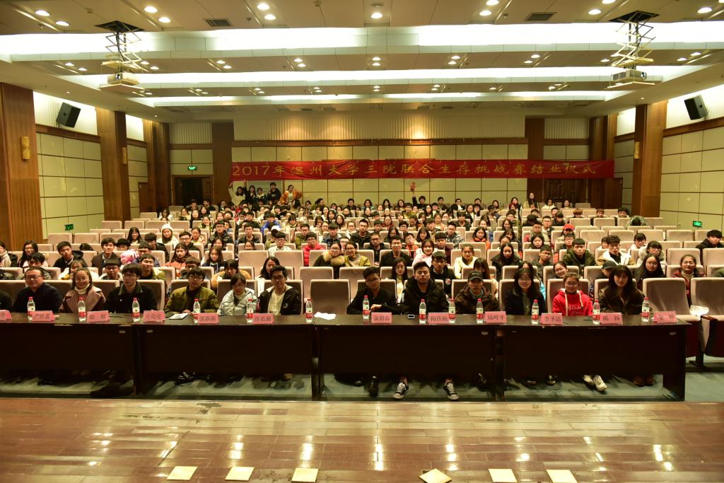 12月23日18时30,温州大学三院联合生存挑战赛结业仪式于北校报告厅举行。此次仪式由新葡萄8883官网AMG、数电学院、法政学院联合举办,由新葡萄8883官网AMG张雨楠同学和数电学院龚家豪同学共同主持。温州市爱星缘儿童心理发展中心创办人胡温中老师,温州大学三院学生会成员参加了此次仪式。