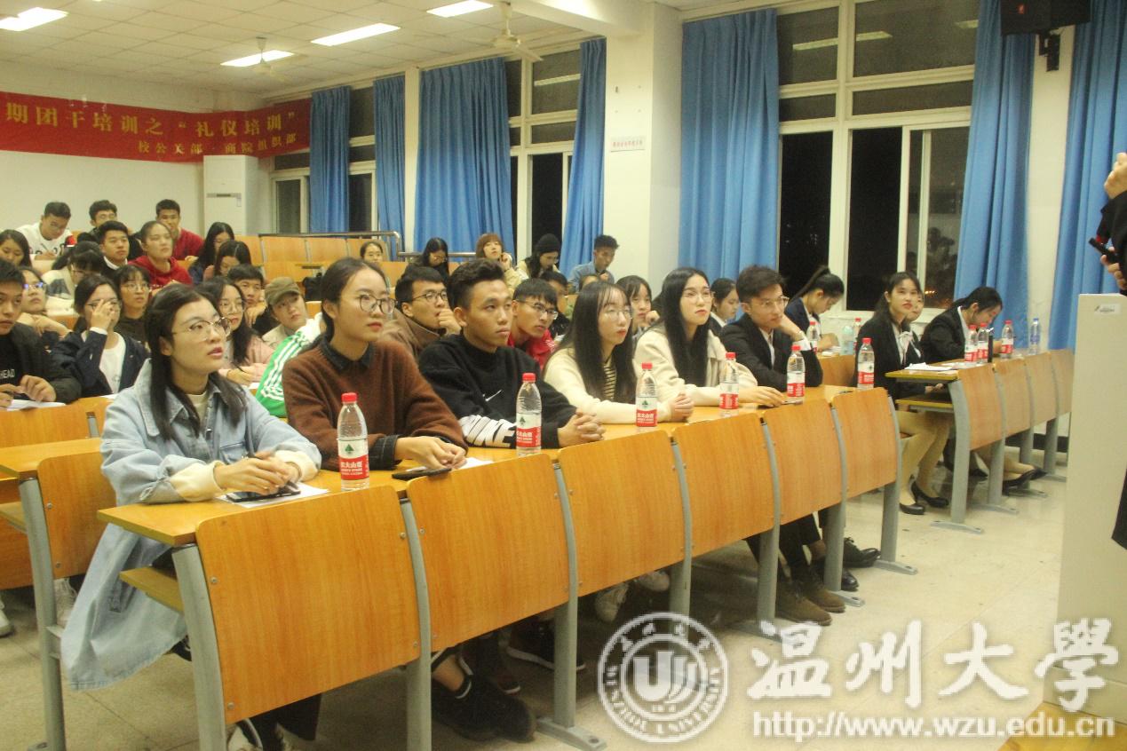 11月2日18时30分,温州大学学生会公关部和新葡萄8883官网AMG团委学生会在北2-401教室联合举办了新葡萄8883官网AMG第十三期团干培训之礼仪培训。本次团干培训由李嘉奕同学主持,旨在让大家懂得礼仪的重要性以及如何学习礼仪。