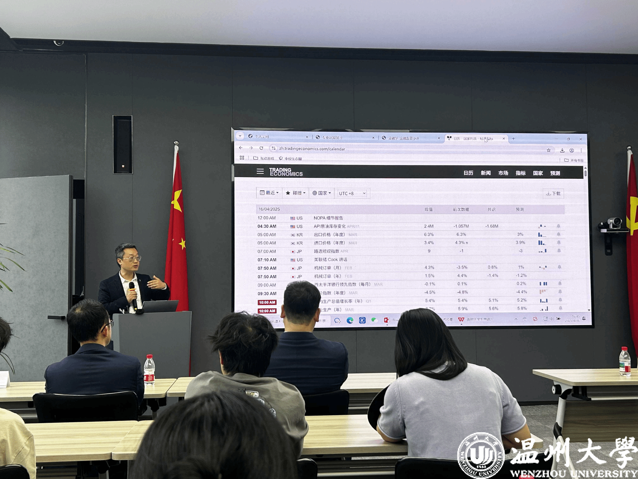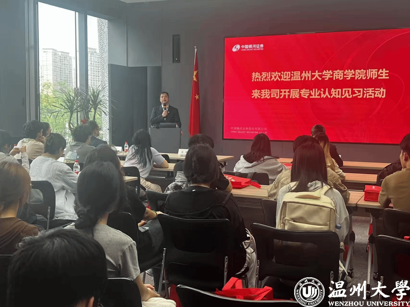 4月16日,我院教工第一党支部以“党建+专业见习”为主题,由金融工程系主任、党支部副书记林德根带队,组织24级金融工程专业学生走进中国银河证券温州三友路营业部,开启了一场“行走的金融课堂”。支部充分发挥"党建引领、双师联动"机制优势,将专业见习与红色教育深度融合,通过参观红色金融阵地、聆听党员先锋讲座、对话行业骨干党员三大模块,构建沉浸式实践育人体系。在营业部党建文化墙前,林德根副书记现场讲授微党课,结合证券行业发展历程解读“金融为民”初心使命,引导学生感悟新时代金融从业者的责任担当。